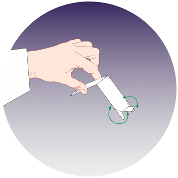 Cогните пластину пополам в месте тиснения так, чтобы дно находилось на дальней от Вас стороне, а прорезь - слева (если Вы левша -- то справа).