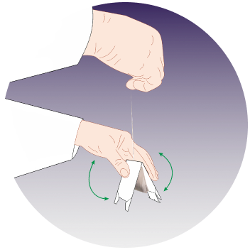 Слегка придержите дно нитью, чтобы пластины могли расправиться и образовать треугольную форму, как на картинке.